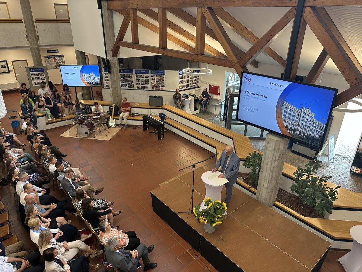 „Ausbildung ohne Bildung führt zu Wissen ohne Gewissen“ – mit diesem eindrucksvollen Zitat eröffnete Stefan Pauler, stellvertretender Bereichsleiter Schulen bei der Regierung von Oberbayern, seine Rede. Er würdigte die Rolle der Schule als Ort der Wertevermittlung und betonte, wie wichtig es sei, junge Menschen nicht nur fachlich, sondern auch menschlich zu bilden. Demokratie, Umweltbewusstsein und soziale Verantwortung seien heute unverzichtbare Bestandteile moderner beruflicher Bildung.