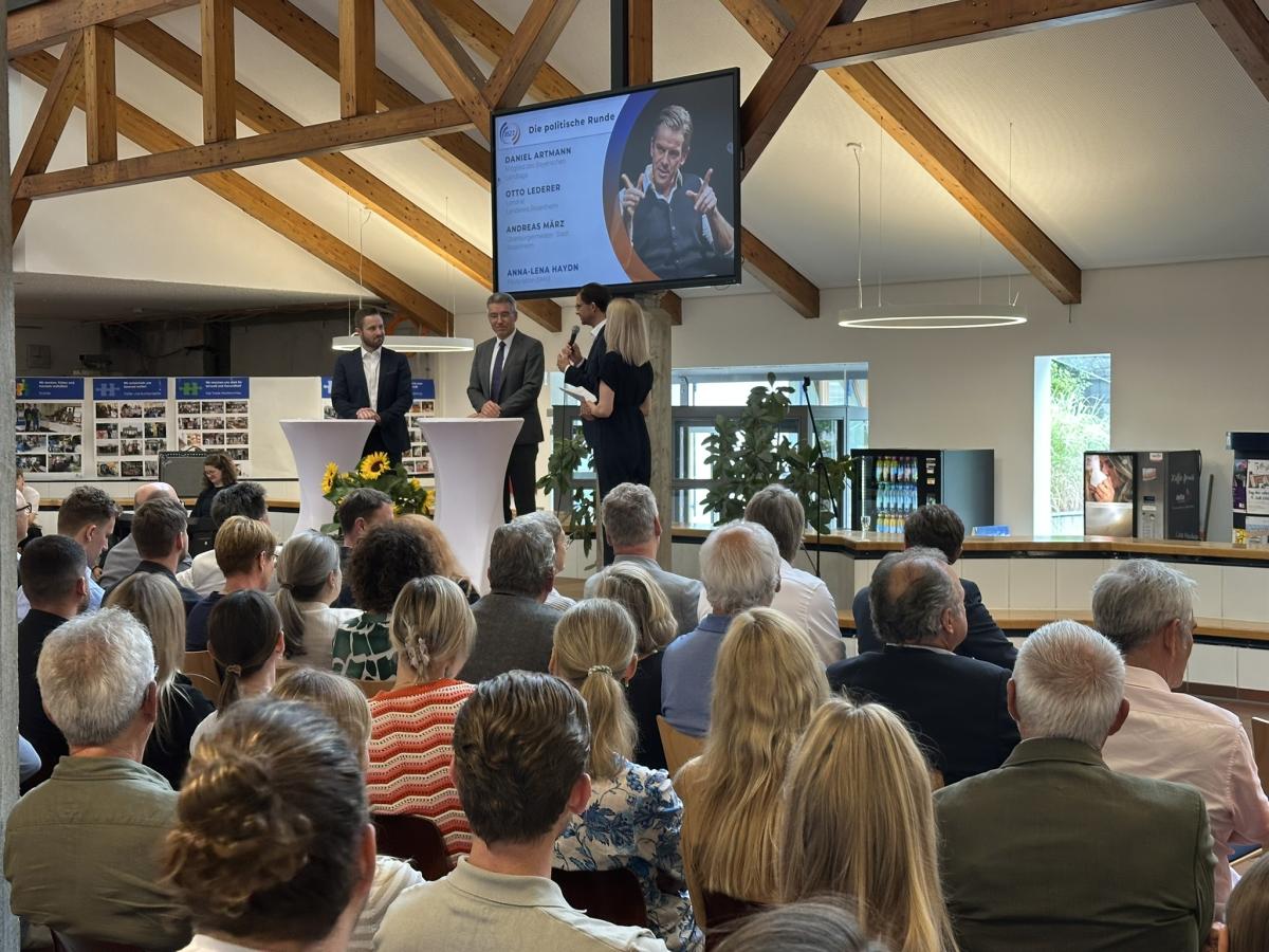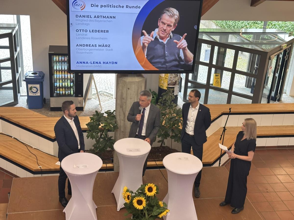 In einer lebendigen Podiumsdiskussion, moderiert von der Schülerin Anna-Lena Haydn, diskutierten Oberbürgermeister Andreas März, Landtagsabgeordneter Daniel Artmann und Landrat Otto Lederer über die Zukunft des Bildungssystems. März sprach sich für ein inklusives Bildungssystem aus: „Nicht jeder muss Abitur machen – aber jeder verdient eine gute Ausbildung.“ Artmann hob die Bedeutung der beruflichen Bildung für den technologischen Fortschritt hervor, der in den Betrieben stattfinde. Lederer betonte, wie wichtig es sei, Fachkräfte durch attraktive Bildungsangebote in der Region zu halten. Ein humorvoller Moment entstand, als Haydn fragte, wer in der Schulzeit einen Verweis erhalten habe – und alle drei Politiker die Hand hoben.