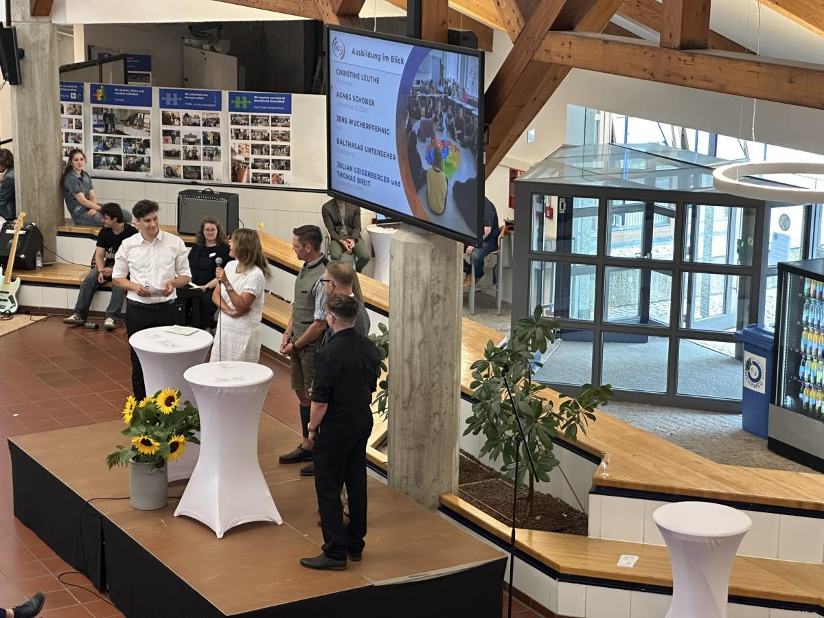 Drei Auszubildende gaben dem Fest eine persönliche Note. Anna-Lena Haydn, angehende Kinderpflegerin, sprach von ihrem Kindheitstraum, mit Kindern zu arbeiten. Julian Geigenberger, in Ausbildung zum Automobilkaufmann, betonte die Bedeutung von Interesse und Fachwissen: „Man muss nicht nur Autos mögen, sondern auch die Technik und die Zukunft der Antriebe verstehen.“ Thomas Breit, der sich nach ersten Erfahrungen in der Elektrotechnik für eine Ausbildung zum Steuerfachangestellten entschied, findet Freude an der Vielseitigkeit seines Berufs – und schätzt, dass das Wissen auch im privaten Alltag hilfreich ist.